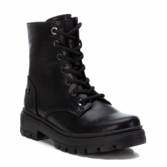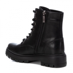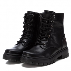 Botín de niña, de la marca Xti Kids. Fabricado en material metalizado que imita a la piel. Cordones negros regulables para un mejor ajuste. Cierre mediante cremallera interior. Gruesa suela de goma antideslizante. Este modelo ha obtenido el certificado vegano por la organización mundial PETA (Organización de los derechos de los animales).