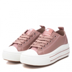 Zapatilla de niña, de la marca Xti Kids. Fabricada en material que imita a la piel. Cordones regulables. Zapatilla de plataforma con suela de goma antideslizante. Este modelo ha obtenido el certificado vegano por la organización mundial PETA (Organización de los derechos de los animales).