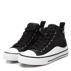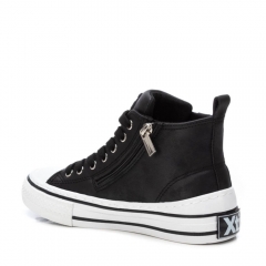 Botín de niña, de la marca Xti Kids. Fabricado en material que imita a la piel. Cierre mediante cremallera con cordones regulables. Botín de plataforma con suela de goma antideslizante. Con plantilla extraíble. Este modelo ha obtenido el certificado vegano por la organización mundial PETA (Organización de los derechos de los animales).