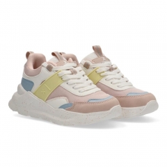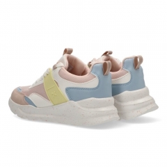 Zapatilla de niña de la marca Xti Kids. Elaborada en un material que imita la piel, combinada con una fina rejilla y pieza de goma en el lateral. Zapatilla divertida y cómoda para su día a día. Con gruesa suela de goma antideslizante. Con plantilla extraíble. Este modelo ha obtenido el certificado vegano por la organización mundial PETA (Organización de los derechos de los animales).