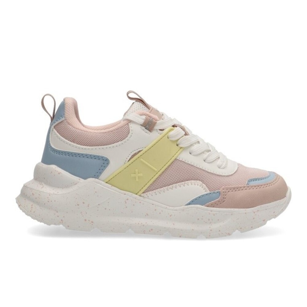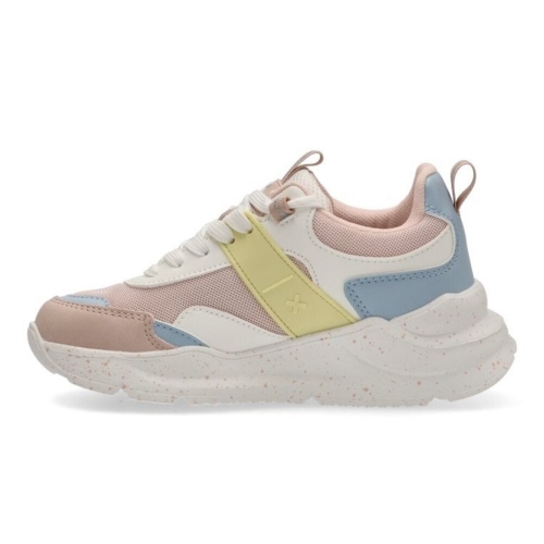 Zapatilla de niña de la marca Xti Kids. Elaborada en un material que imita la piel, combinada con una fina rejilla y pieza de goma en el lateral. Zapatilla divertida y cómoda para su día a día. Con gruesa suela de goma antideslizante. Con plantilla extraíble. Este modelo ha obtenido el certificado vegano por la organización mundial PETA (Organización de los derechos de los animales).