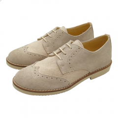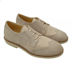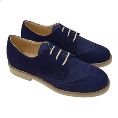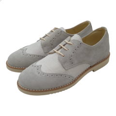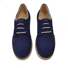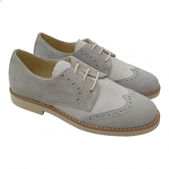 Zapato casual de niño para comunión o ceremonia, cierre de cordones, fabricado por Yowas modelo 20334 en color iris. De este zapato cabe destacar lo cómodo que es, ya que el piso es microporoso y muy ligero, además es todo de piel con los filos acolchados. En el exterior combina piel serraje con textil simulando el lino, lo que le hace que sea muy transpirable para días calurosos.