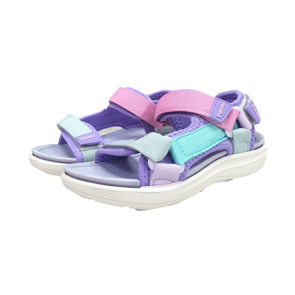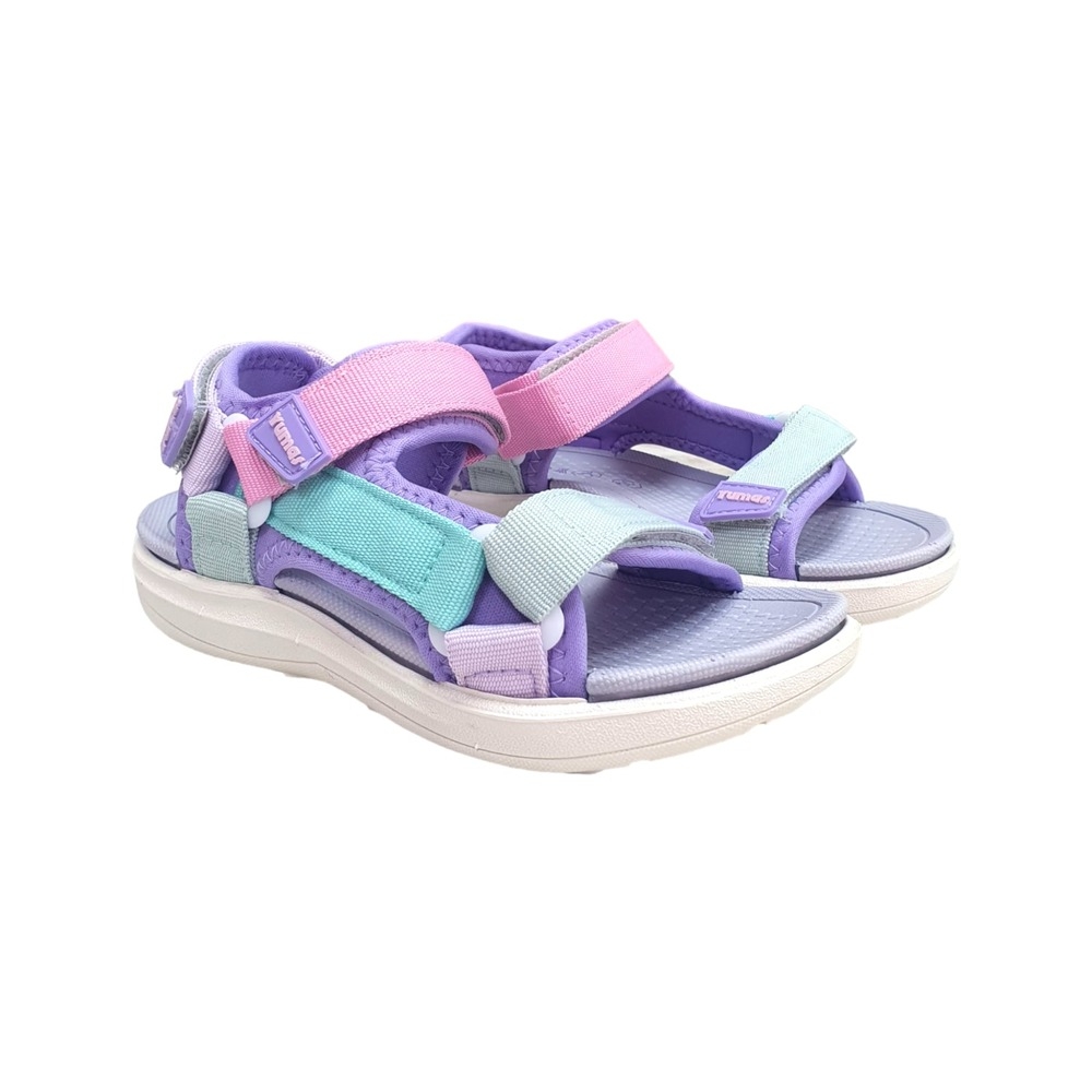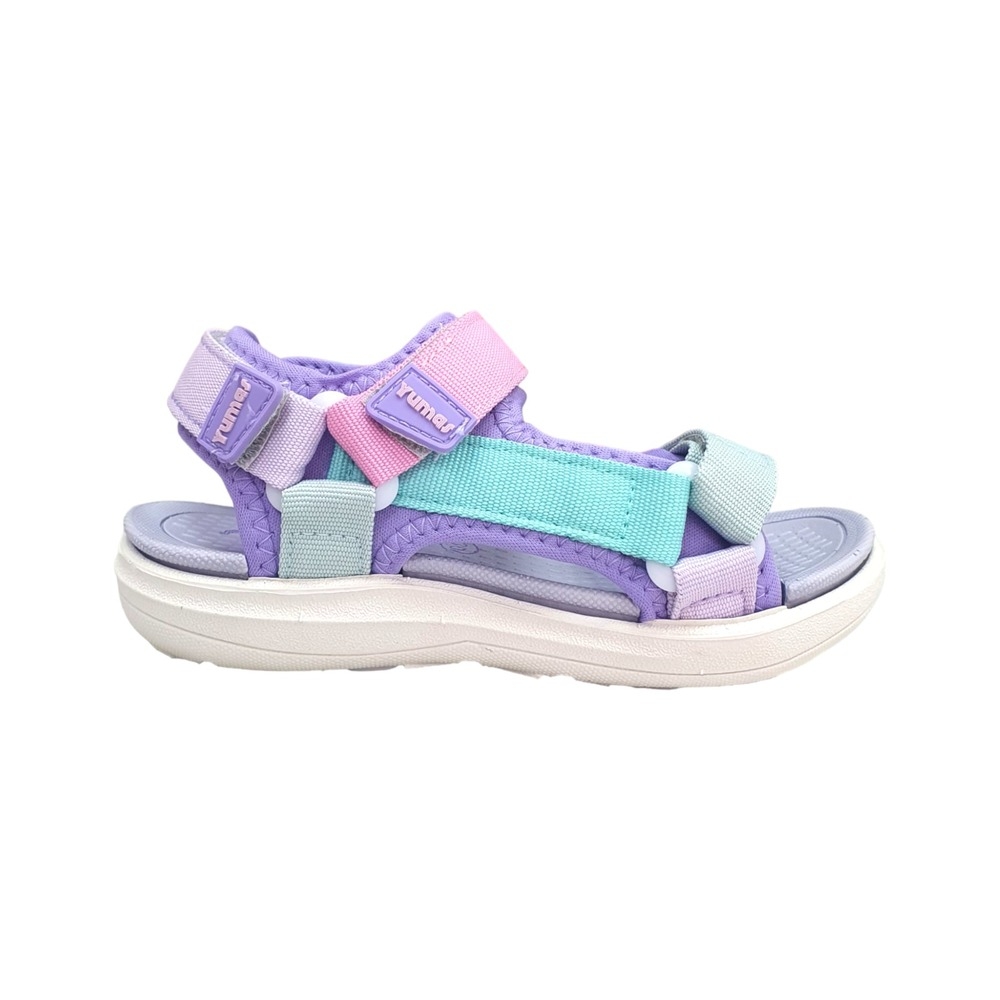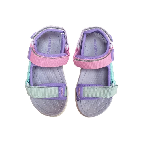Sandalia Alejandría tipo californiana de la marca Yumas en colores combinados gris y caqui. Cierre de velcro.