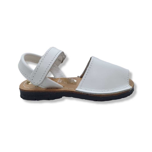 Sandalia menorquina unisex en color blanco. Cierre de velcro y piso de goma antideslizante