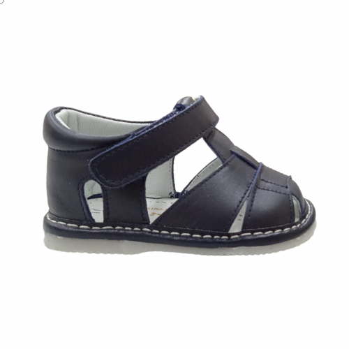 Unas sandalias sofisticadas , flexibles y con la piel blanda para los mas pequeños . Zapato tipo sandalia fabricado en napa de piel bovina  y sistema de cierre de velcro para un mejor ajuste . La parte interior está fabricada con forro de piel natural y su  suela es de goma antideslizante. Calzado diseñado y fabricado en España.