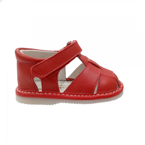 Unas sandalias sofisticadas , flexibles y con la piel blanda para los mas pequeños . Zapato tipo sandalia fabricado en napa de piel bovina  y sistema de cierre de velcro para un mejor ajuste . La parte interior está fabricada con forro de piel natural y su  suela es de goma antideslizante. Calzado diseñado y fabricado en España.