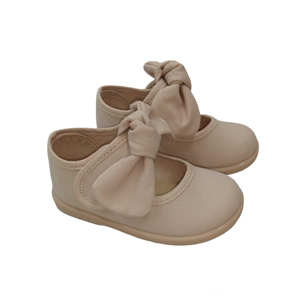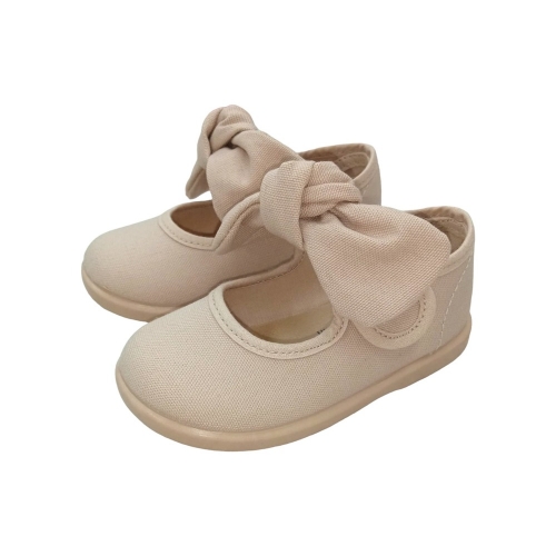 Merceditas de lona para niñas con un bonito lazo frontal de quita y pon. El cierre es con un velcro para un mejor ajuste. Fabricadas en textil. Muy cómodas y transpirables, perfectas para los meses más calurosos. Puedes combinarlas con todo. La suela es antideslizante. ¡Serán las favoritas de la princesa de la casa!