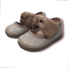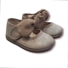 Mercedes en color azul marino con brillito y detalle de lazo en el empeine que se puede quitar. Cierre de velcro.