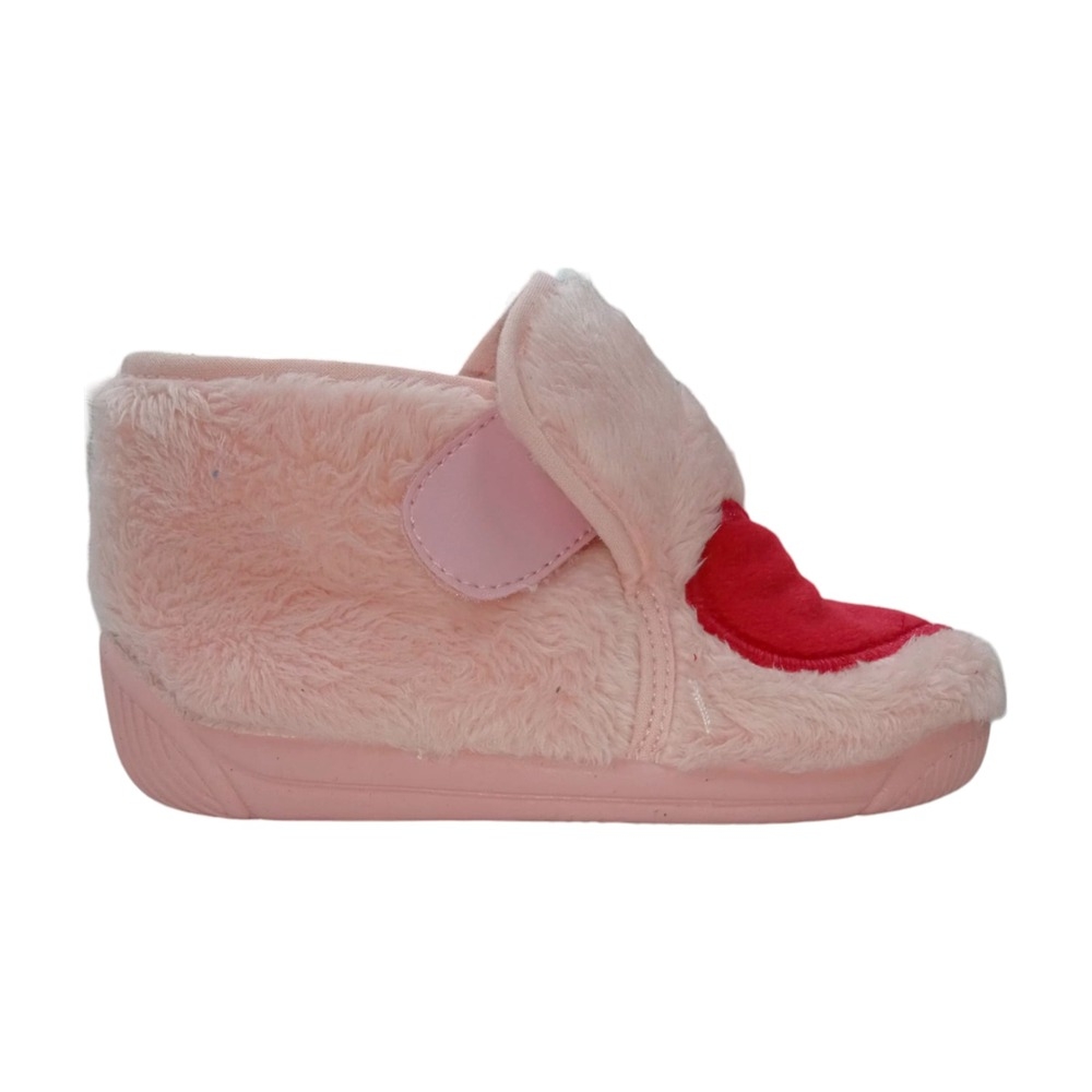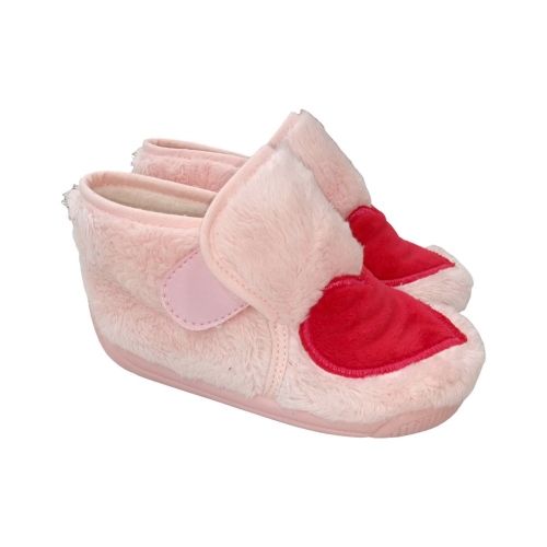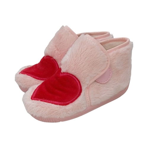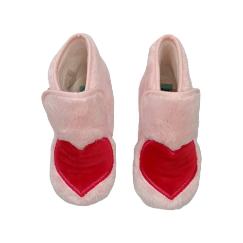 Zapatilla de casa de la marca Batilas con dibujo de corazón rojo. Cierre de velcro y piso de goma antideslizante.