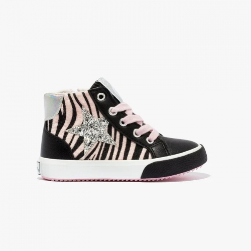 Sneakers altas confeccionadas en una combinación de materiales sintéticos. Cordones de algodón. Cremallera en el lateral para facilitar su puesta. Detalle de estrella glitter en lateral  y parche iridiscente en talón. Suela de goma dentada que mejora el agarre.