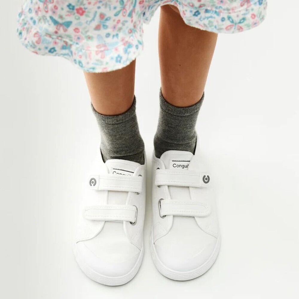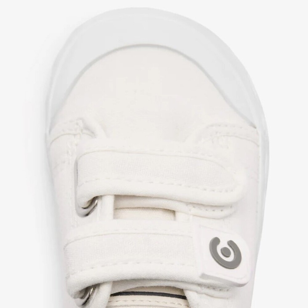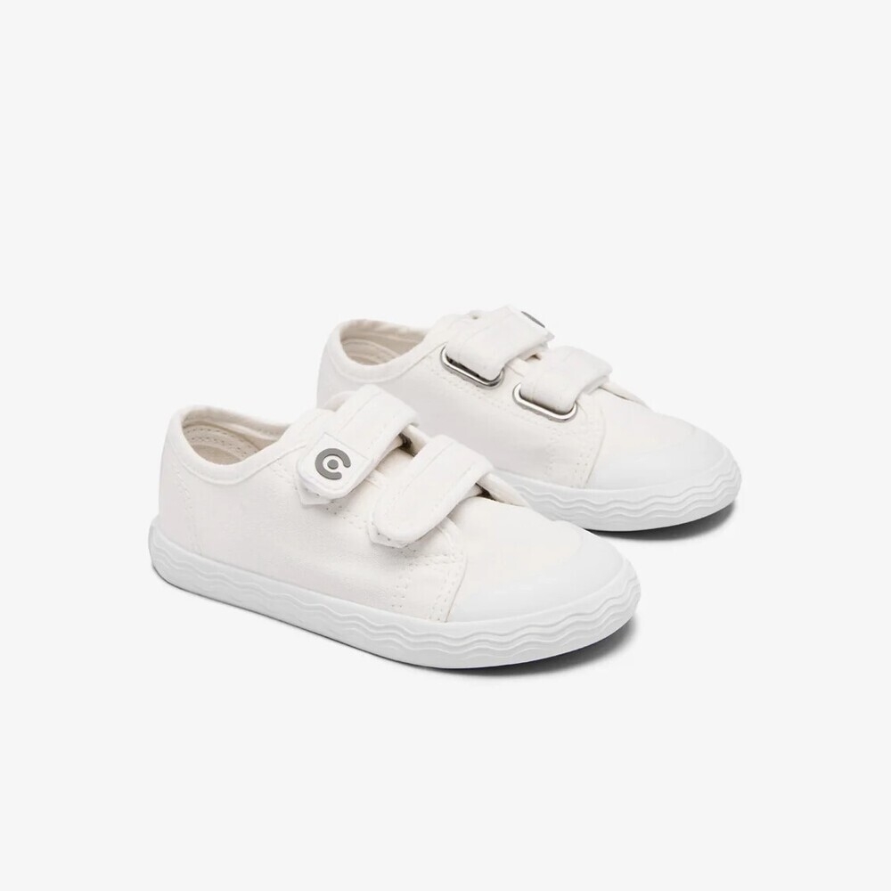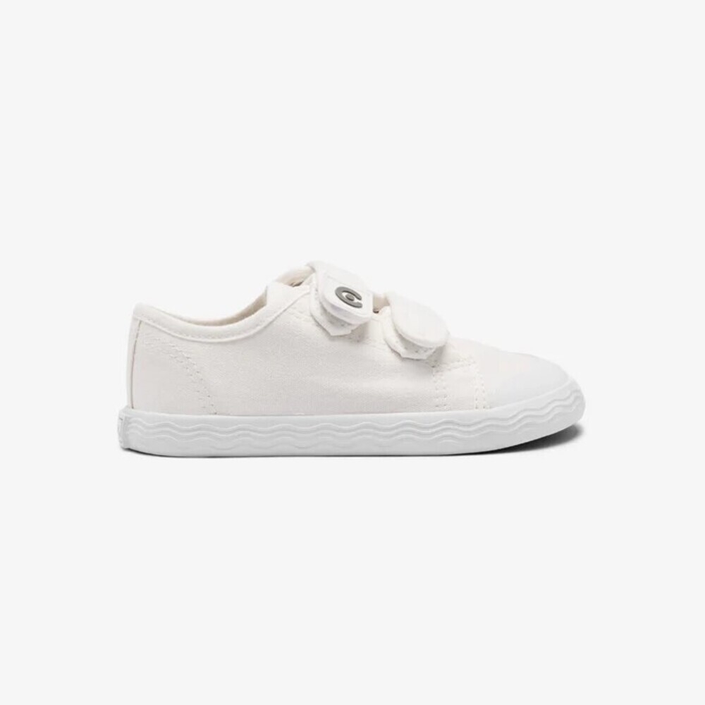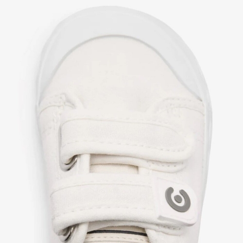 Zapatillas deportivas Goflex Barefoot de lona blanca, un diseño minimalista que las convierte en un básico para el día a día. Incorporan una suela original con detalle de ondas y un práctico cierre de doble tira adherente para para poner y quitar rápidamente.