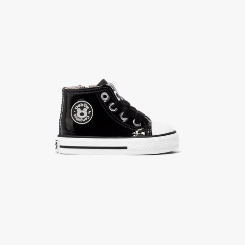 Zapatillas altas de bebé en color negro con acabado en charol sintético. Tiene una cremallera en lateral de la bota y el logo de Osito en el otro. Suela de goma que garantiza flexibilidad y una puntera reforzada para una mayor protección del pie. Un básico para el día a día que no puede faltar en el armario de cualquier bebé.
