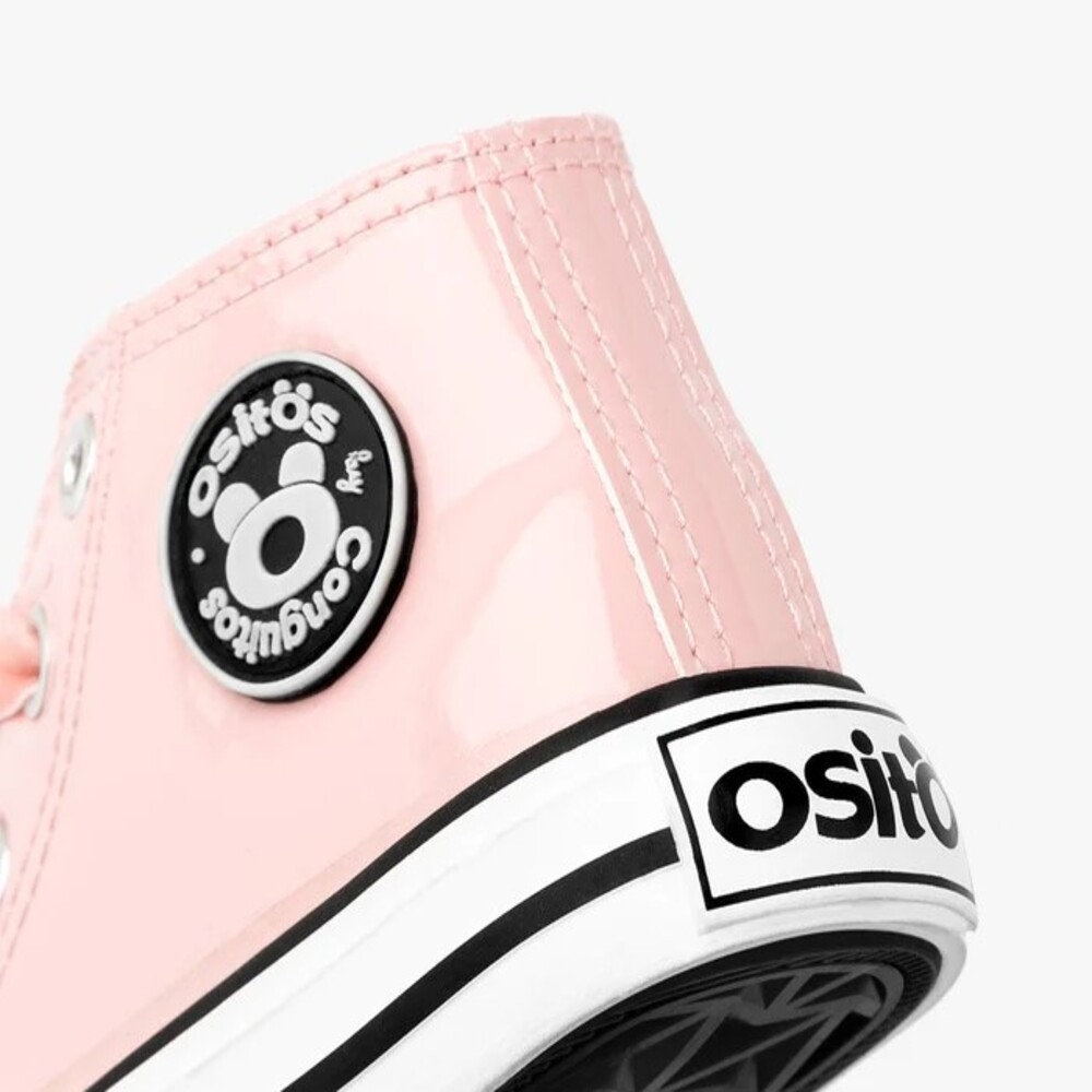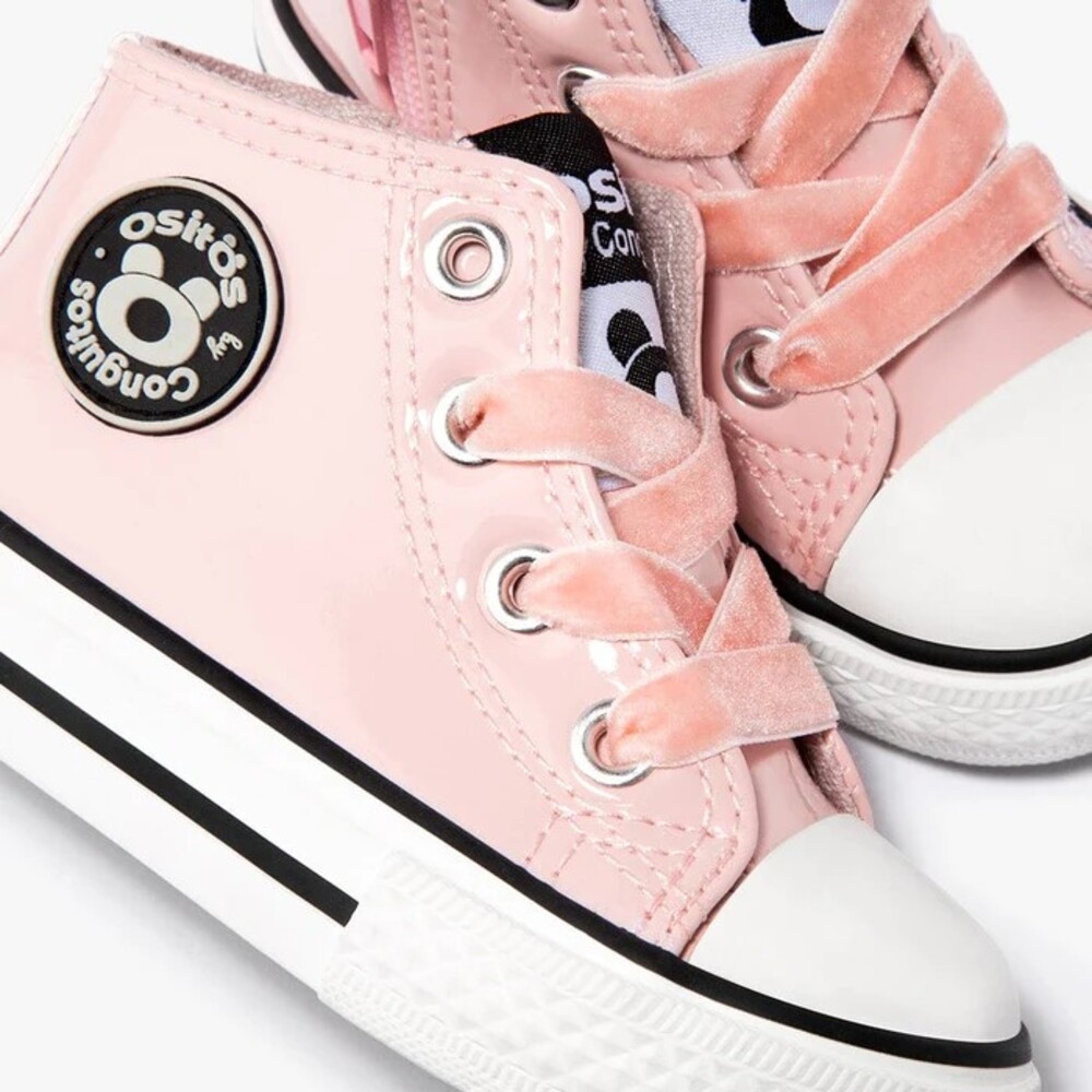 Zapatillas altas de bebé en color rosa con acabado en charol sintético. Tiene una cremallera en lateral de la bota y el logo de Osito en el otro. Suela de goma que garantiza flexibilidad y una puntera reforzada para una mayor protección del pie. Un básico para el día a día que no puede faltar en el armario de cualquier bebé.