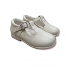 Pepito en piel napa blanco con cierre de hebilla y piso de goma antideslizante.