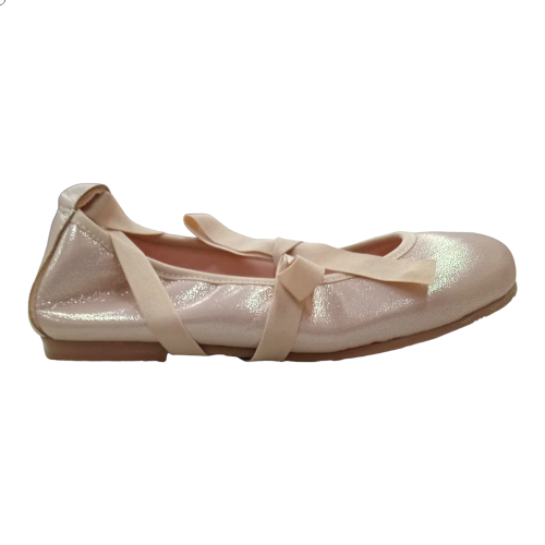 Bailarina para niña de la marca Duendy Shoes en color dorado. Cinta elástica al tono para anudarlo al tobillo. Perfecto para ceremonias y eventos especiales.