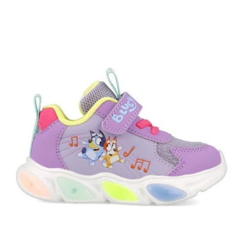 Zapatilla deportiva Garvalín BLUEY CON LUCES en el piso. MUY LIGERA con cierre de cordones elásticos y velcro. La plantilla es extraíble.