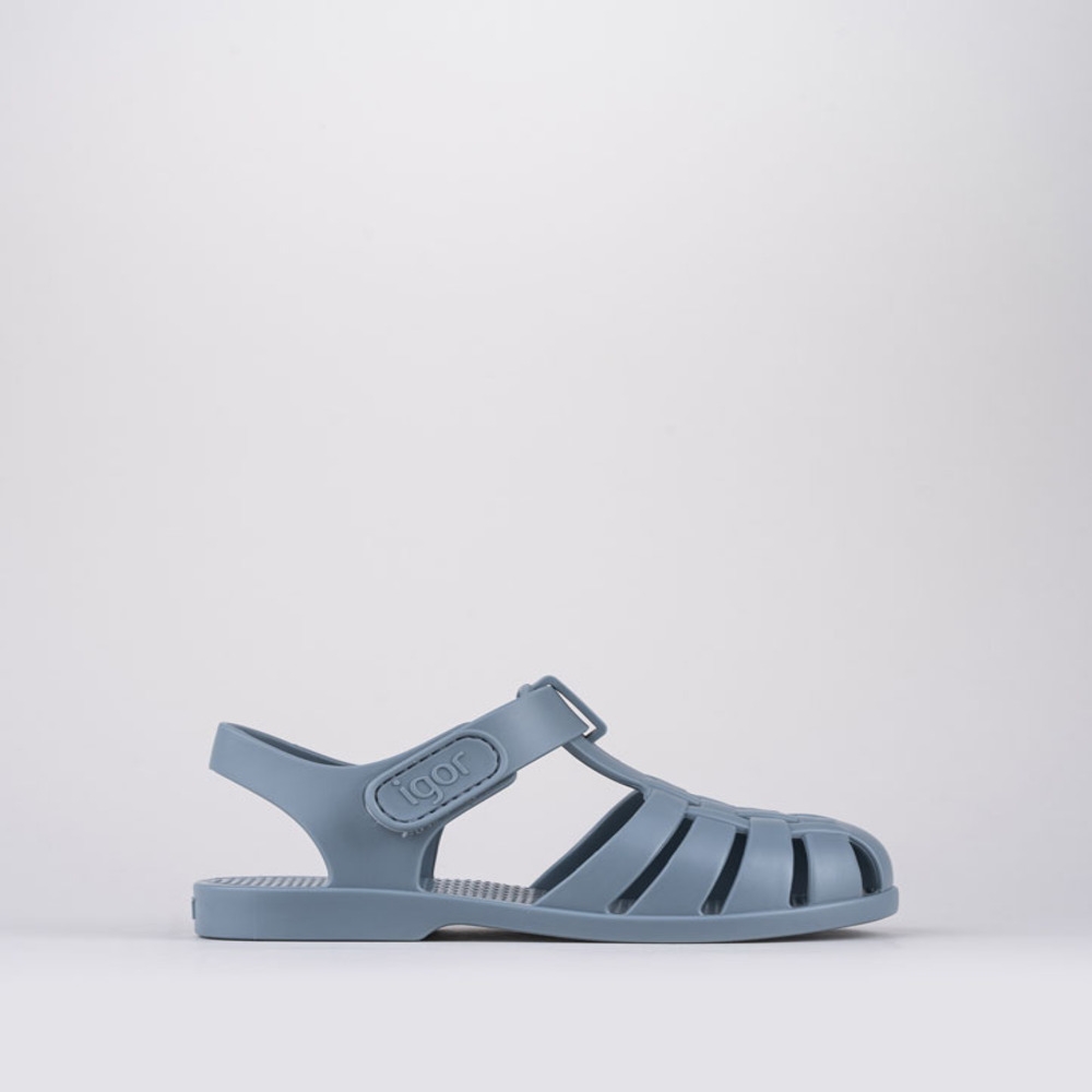 Cangrejera clásica fabricada con al menos un 50% de pvc reciclado libre de ftalatos y cierre adherente.