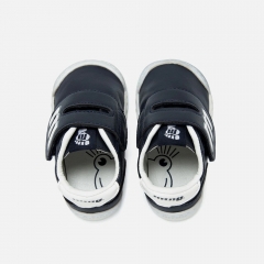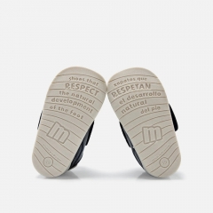 Zapatilla deportiva Free Mustang para bebes, su diseño es en piel sintética de color blanco con tira adhesiva en el empeine y detalle de la inicial de color azul marino. Diseñada y desarrollada especialmente en colaboración con el Dr. Juanjo López, traumatólogo deportivo e infantil, para respetar el desarrollo natural del pie del niño. Gracias a su puntera ancha permite el libre movimiento de los dedos dentro del zapato. Su suela tiene 3 mm de grosor y con zero drop (totalmente plana) respeta el natural desarrollo del pie del pequeño y sus elementos flexibles y torsionables hace que el pie del niño no esté encorsetado por la estructura del zapato. Las plantillas extraíbles y las marcas de los dedos en la misma, facilita comprobar si la talla del calzado es la correcta para tu hijo. Además, su fácil apertura facilita que el niño pueda descalzarse y calzarse de forma autónoma. Acompaña los primeros pasos de tu bebé con Mustang.