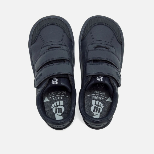 Zapatillas de color azul marino para niño, modelo Free de Mustang. Su práctico cierre doble adhesivo permite un ajuste rápido y sencillo. Los refuerzos en puntera y talón garantizan mayor resistencia frente al uso intensivo. Diseñado y desarrollado especialmente en colaboración con el Dr. Juanjo López, traumatólogo deportivo e infantil, para respetar el desarrollo natural del pie del niño y la niña. Gracias a su puntera ancha permite el libre movimiento de los dedos dentro del zapato. Las plantillas extraíbles facilitan comprobar si la talla del calzado es la correcta para tu hijo. Además, su fácil apertura facilita que el niño pueda descalzarse y calzarse de forma autónoma. Con certificado VEGANO sellado por INESCOP, el cual garantiza que la naturaleza química principal del material no se corresponde con fibras de origen animal.