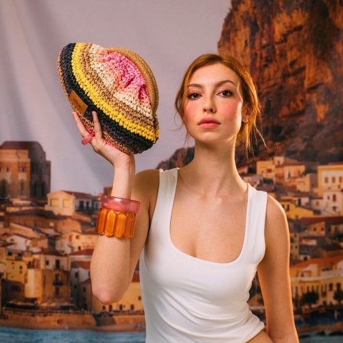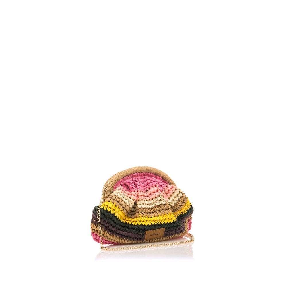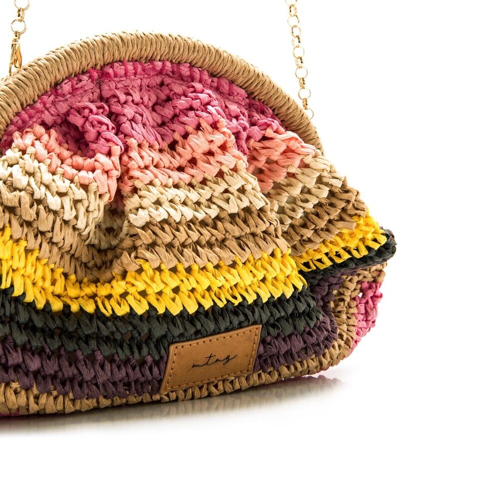 Bolso Salay Mustang para mujer, de estilo clutch, destaca gracias a su diseño de rafia en una original combinación de colores como el rosa, negro y amarillo. Incluye un panel de color cuero con la firma de la marca en la parte frontal. Incluye un asa de metal para añadir un toque de vestir a tus looks. Dale un toque de color a tus looks preferidos con Mustang.