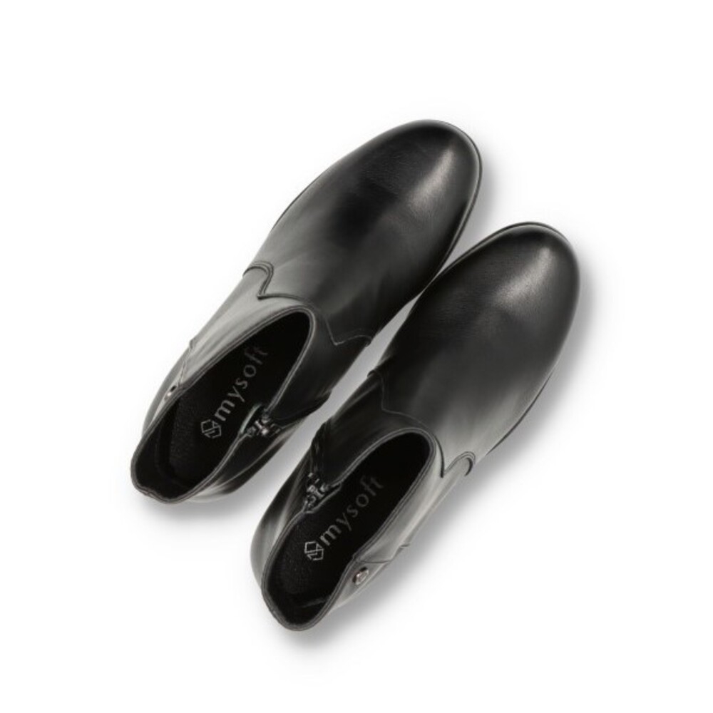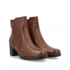 Botín con tacón para mujer 24M825 de mysoft. De piel 100%vacuno, interior en tejido cálido y plantilla acolchada extraible. Suela de goma ligera y antideslizante, con tacón de unos 4cm de altura. Incorpora cremallera interior para mejorar su puesta.