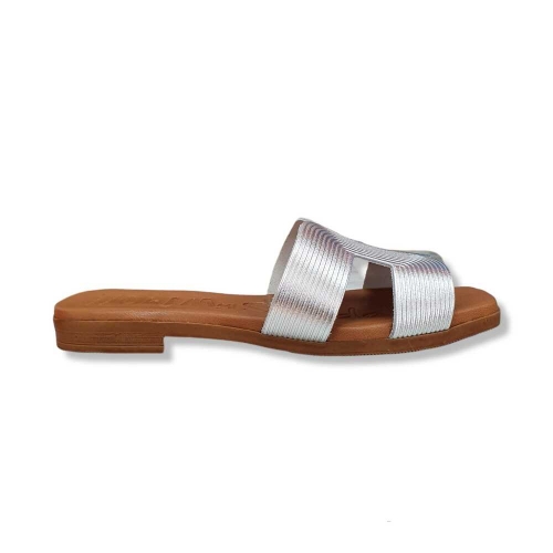 Sandalia en color plata metalizado. Planta de gel acolchado.