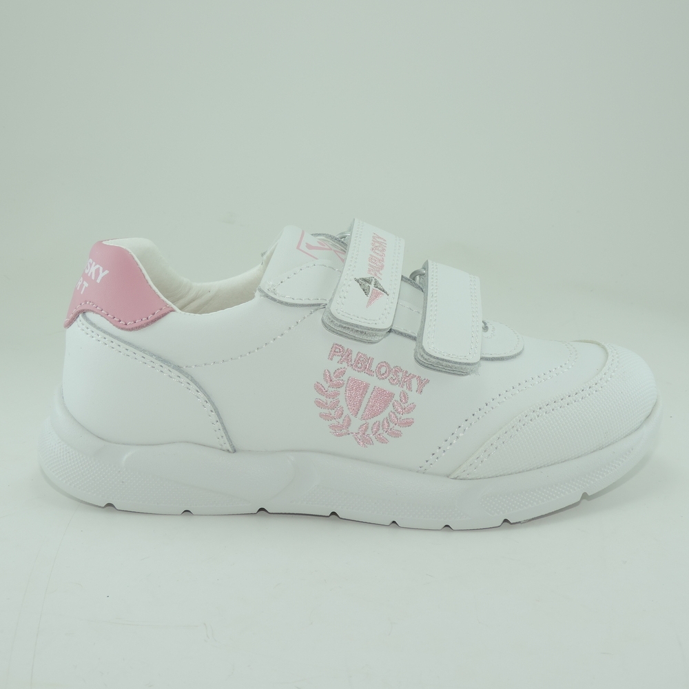 Deportivo blanco-rosa en piel. Cierre en dos velcros para la mayor sujeción y adaptación a cualquier tipo de pie. Plantilla de piel totalmente transpirable. Piso ultraligero de gran resistencia y comodidad, para sentir los pies libres todo el día.