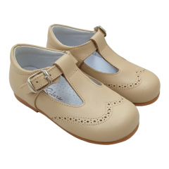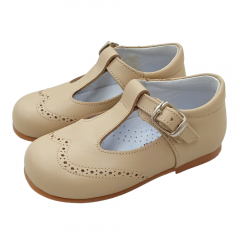 Pepito todo piel con cierre de hebilla y piso de goma antideslizante. Ideal para los primeros pasos. Fabricado en España.