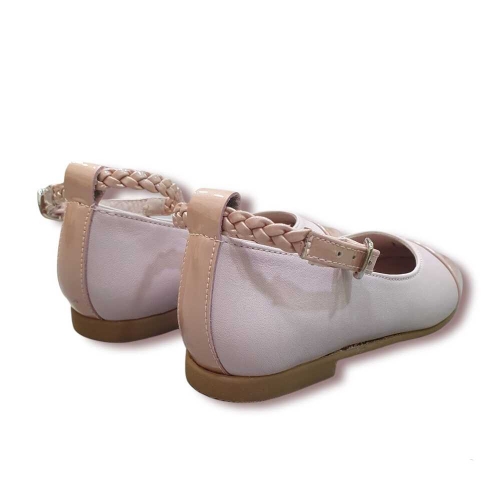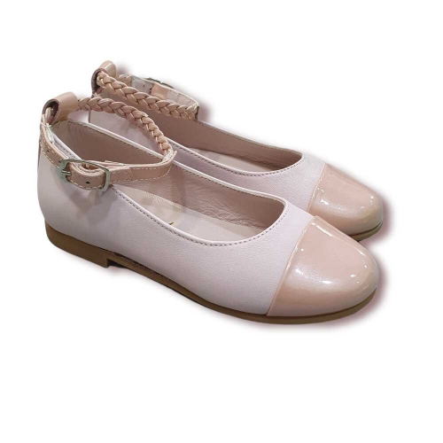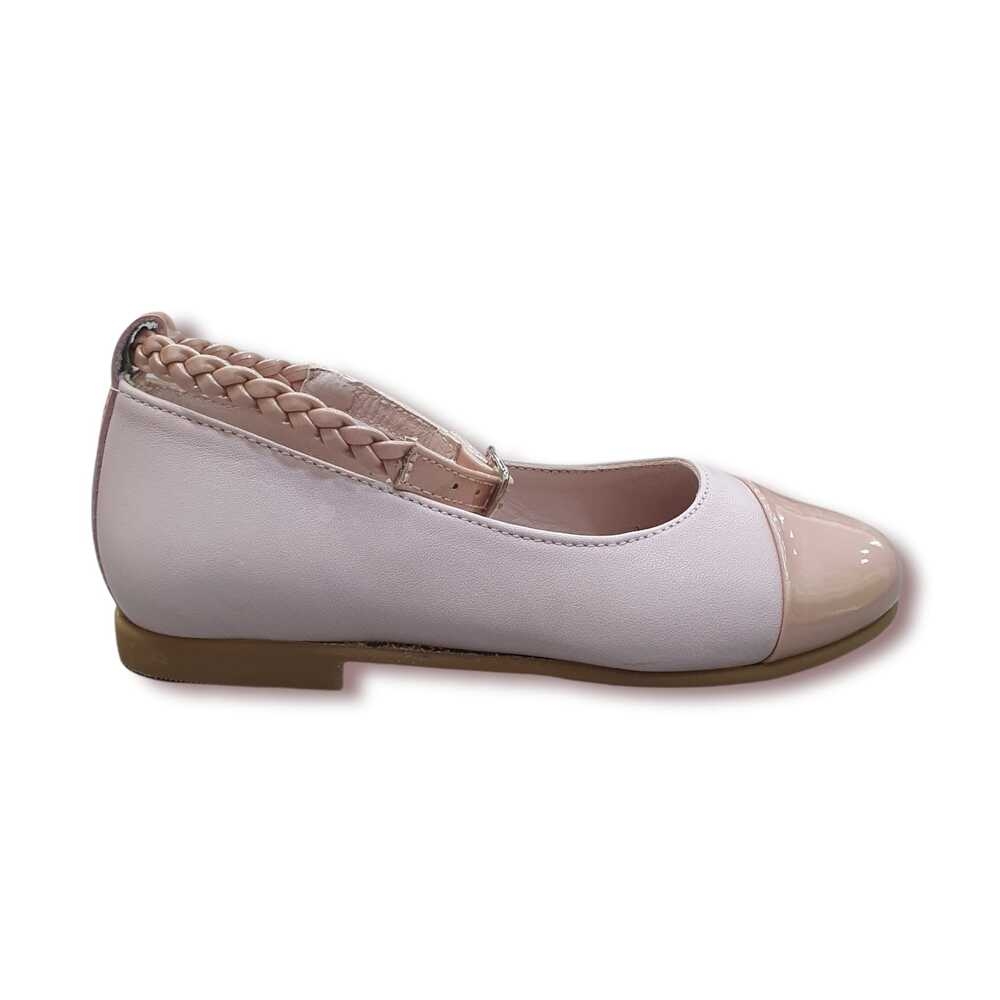 Mercedita en piel con correa trenzada al tobillo.