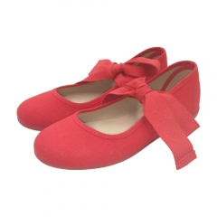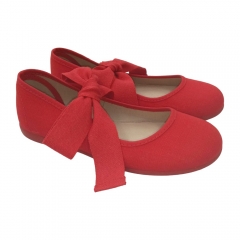 Mercedita en tejido tipo lino con lazada al empeine en tono marino.