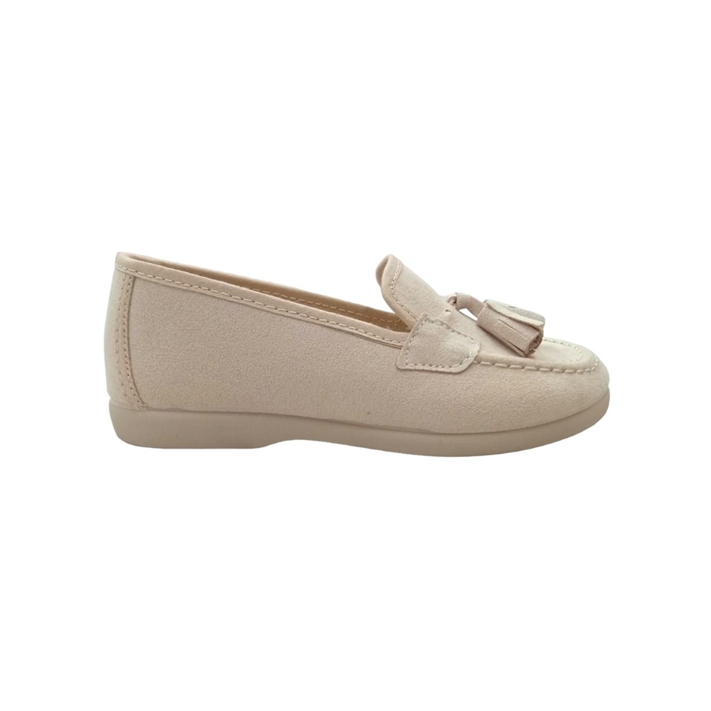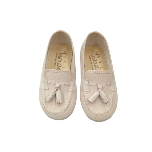 Mocasín en serratex beig con detalle de borlas en la pala.