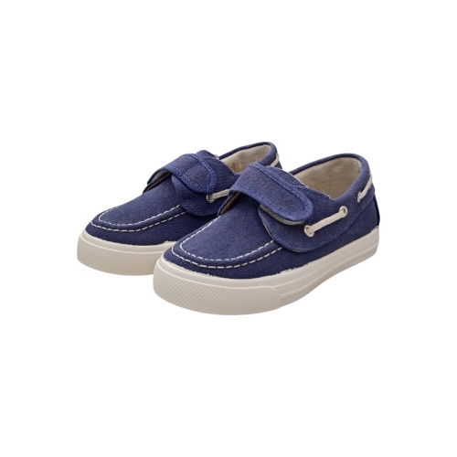 Náutico de lona en color tejano azul con cierre de velcro.