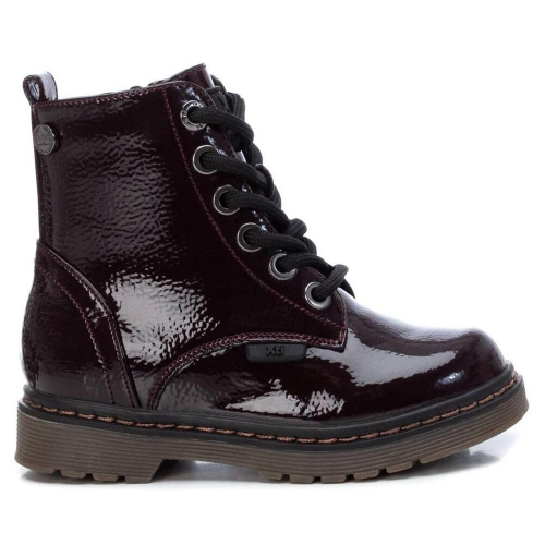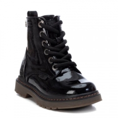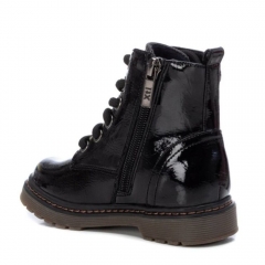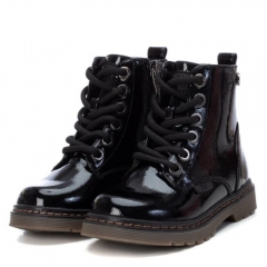 Botín de niña estilo militar, con suela de goma de 2 cm antideslizante. Marca Xti Kids. Está fabricado en un material que imita al charol. Tiene cierre con cremallera, para poder calzarlos con facilidad. Un botín de plena tendencia para combinar con cualquier look. Este modelo ha obtenido el certificado vegano por la organización mundial PETA (Organización de los derechos de los animales).