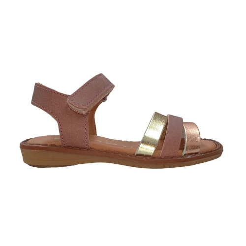 Sandalia color vino-cuero con tiras metalizadas en la parte delantera. Sandalia de piel y piso de goma antideslizante.